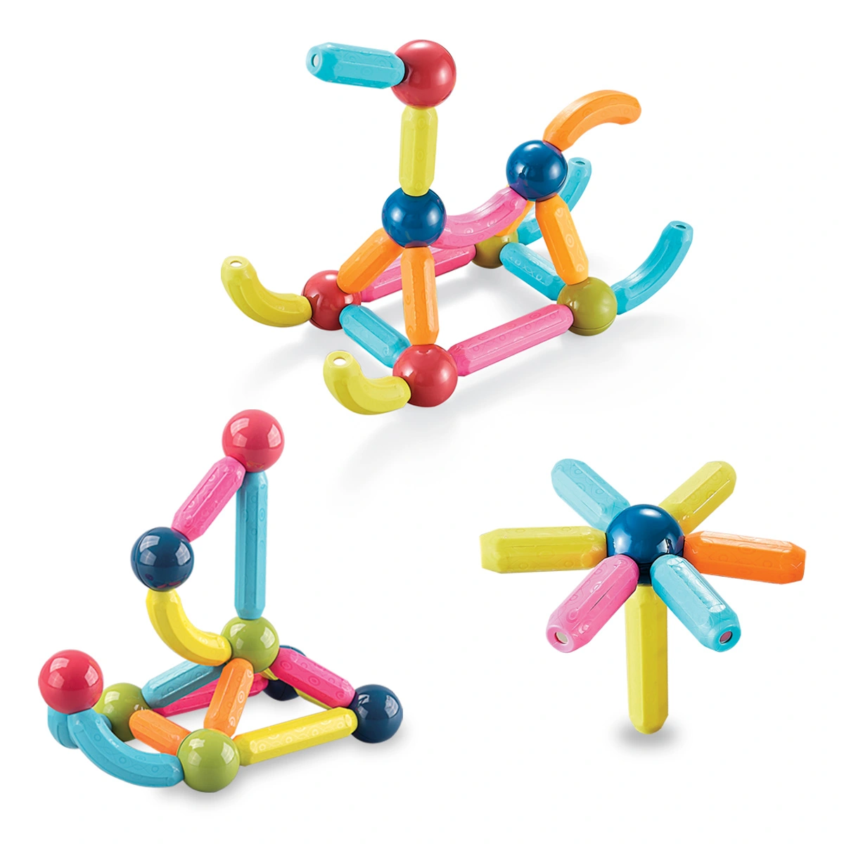 Los bloques magnéticos son una forma divertida de aprender jugando: estimulan la creatividad, la motricidad fina y la coordinación, a la vez que invitan a los chicos a explorar formas, colores y construcciones en equipo, desarrollando imaginación y pensamiento lógico.